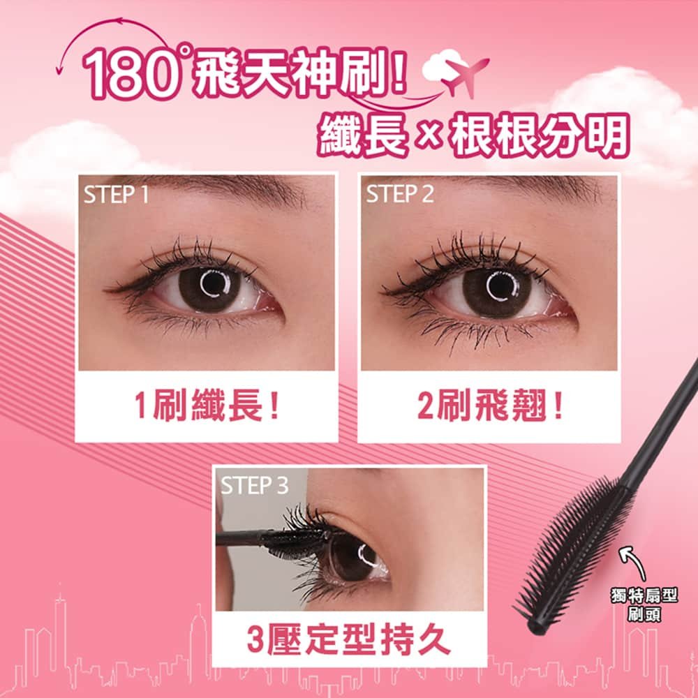 *膏體輕盈!富含持久飛天長翹配方,一刷根根飛揚飛天翹!