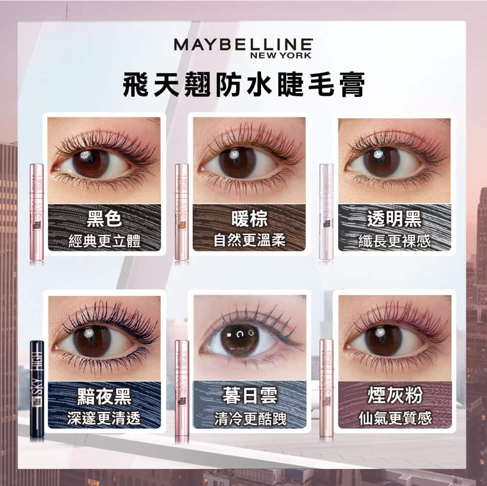北美創造1,000萬支驚人銷量、全球討論度爆高的媚比琳「飛天翹防水睫毛膏」新登場! 獨家24H飛天瞬翹科技,膏體輕盈且富含持久飛天長翹配方,一刷立即纖長根根飛翹揚,使用後睫毛彷彿能瞬間無限延伸;全新添加角蛋白複合物,擦睫毛的同時讓睫毛更能深度滋養本身睫毛使其強韌捲翹,維持24H根根飛揚。