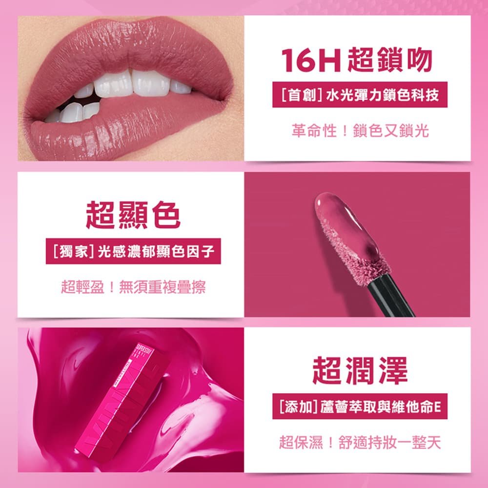 首創「水光彈力鎖色科技」,打造水潤感不沾杯唇彩,顛覆唇彩想像!